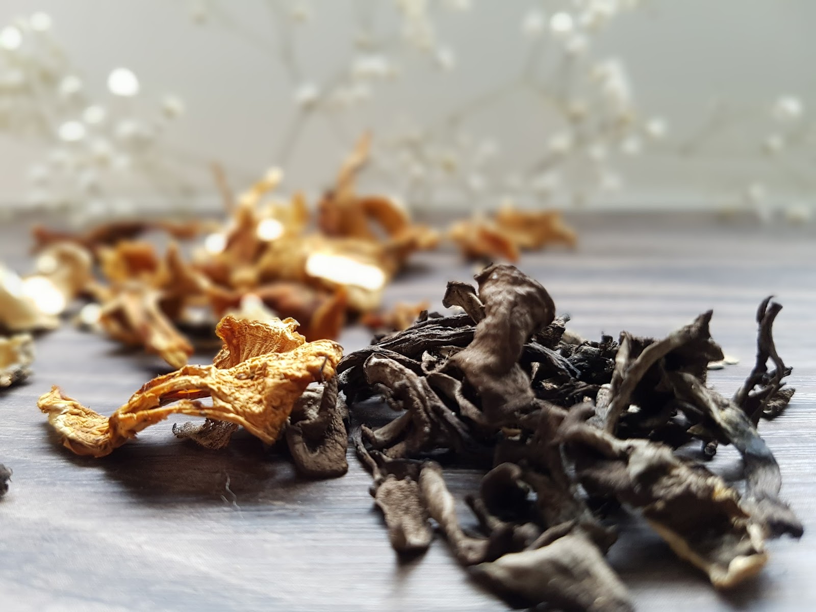 100 gr de sal marina gruesa de las Salinas de Eivissa30 gr de setas deshidratadas: shiitake, trompetas de la muerte y rebozuelos.